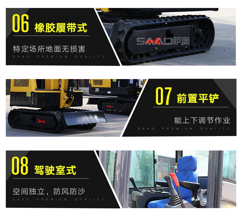 小型挖掘机主要适用于农业蔬菜大棚的土地疏松,市政部门的园林绿化、果园苗圃栽树挖坑、混凝土路面破碎,砂石料搅拌等空间狭小的施工作业等;是将来不断替代人工,解放劳动力的理想设备。